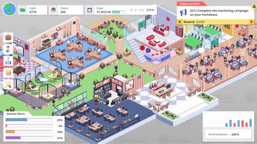 - Улучшайте компанию через дерево навыков: что предпочтете — отпуск подольше или кондиционер подешевле?